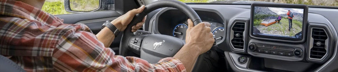 The spacious cabin of the Ford Bronco Sport is capable of comfortably seating up to five passengers. With the safari-style roof, everyone has enough space to sit back and enjoy the ride. When you want a breath of fresh air, slide open the available power moonroof for an open-air experience. The interior is also loaded with technologies to keep you connected, including Sync 3 with available breadcrumb navigational features.