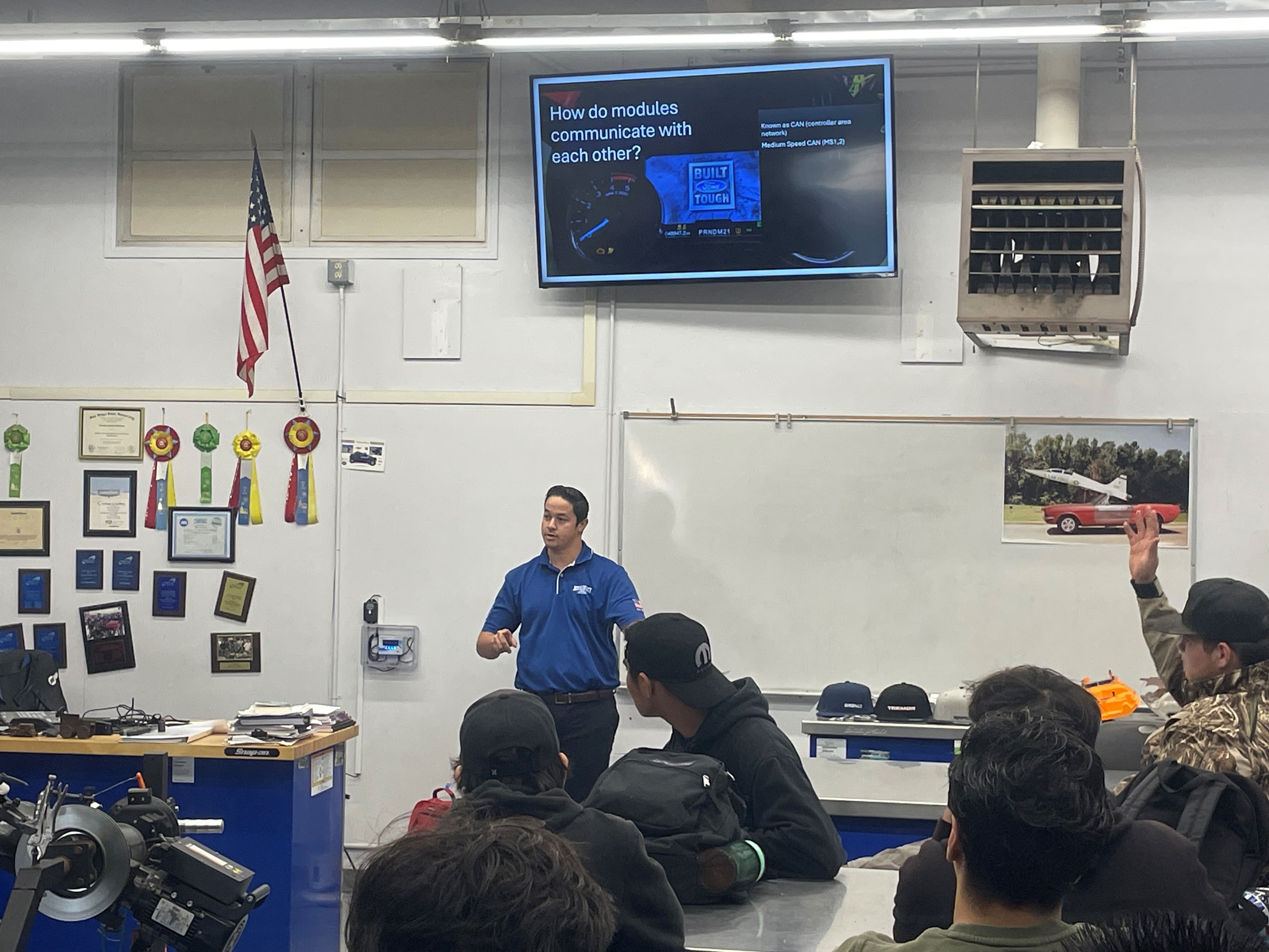 At North County Ford, our commitment to giving back to the community continues to grow with every visit. As part of our ongoing initiative to engage with local schools, our team recently visited Vista High School, out of Vista, California, where General Manager Frank Pierce and Shop Foreman Micah Watters spent the day sharing their expertise with students.